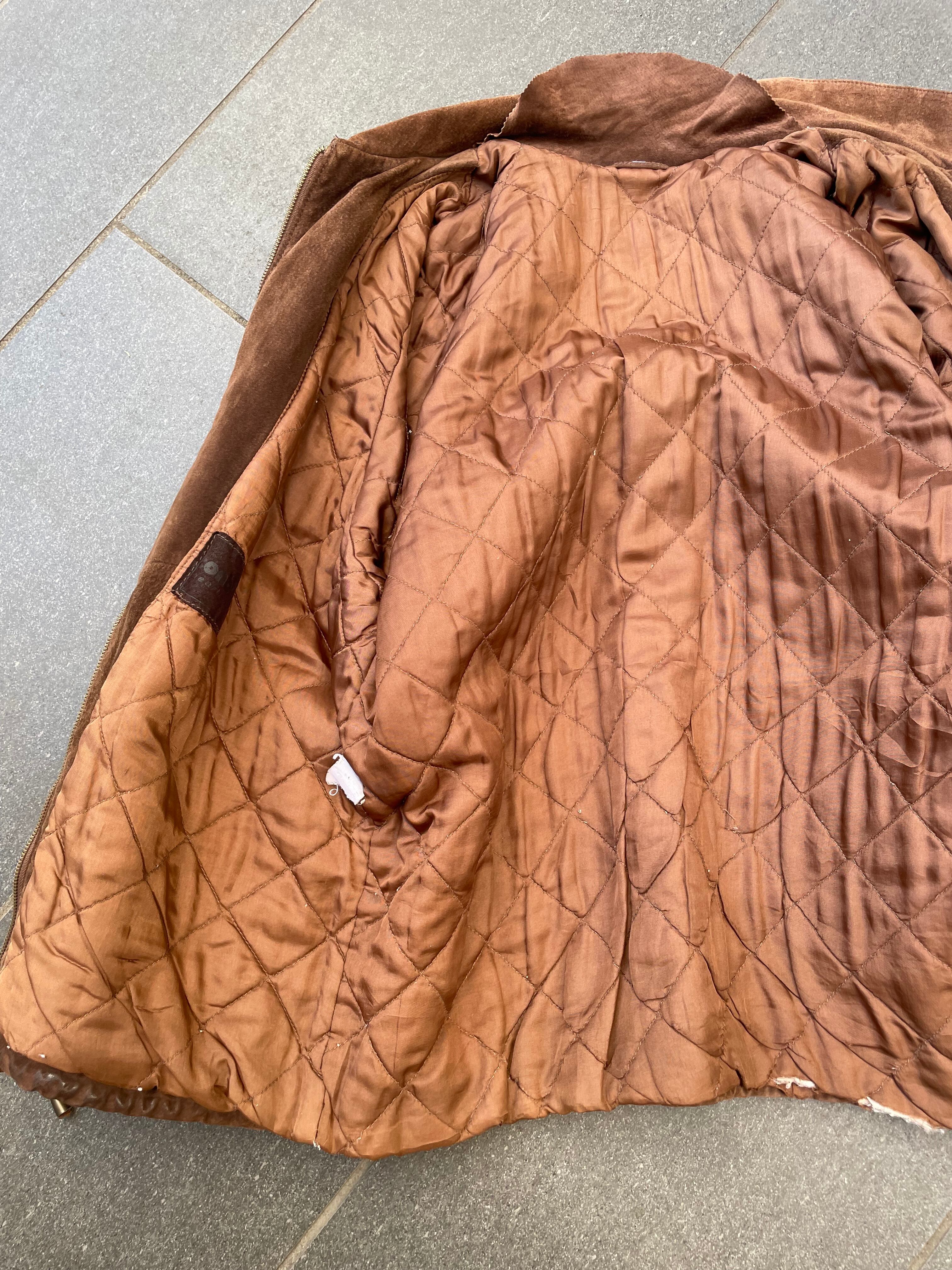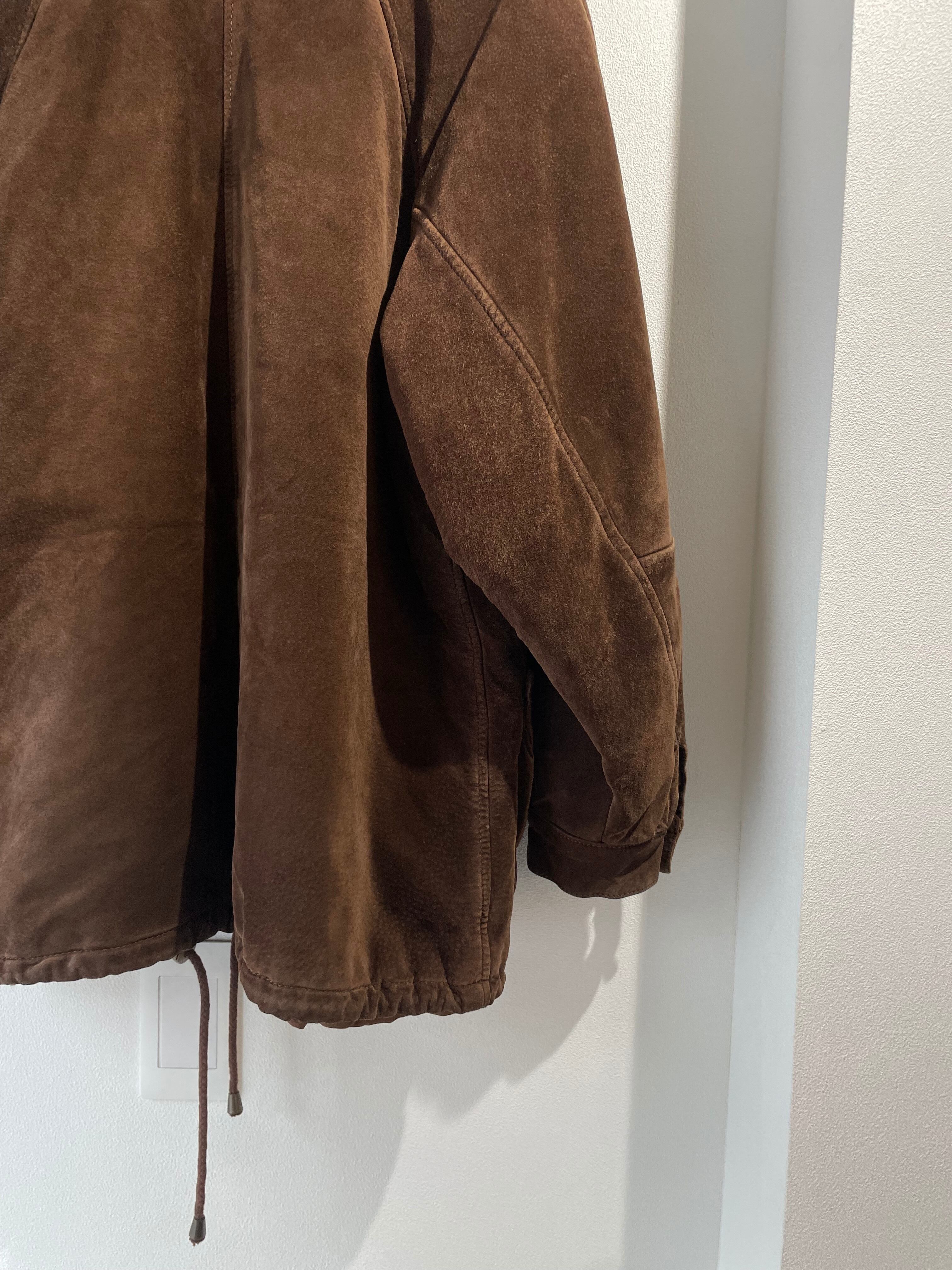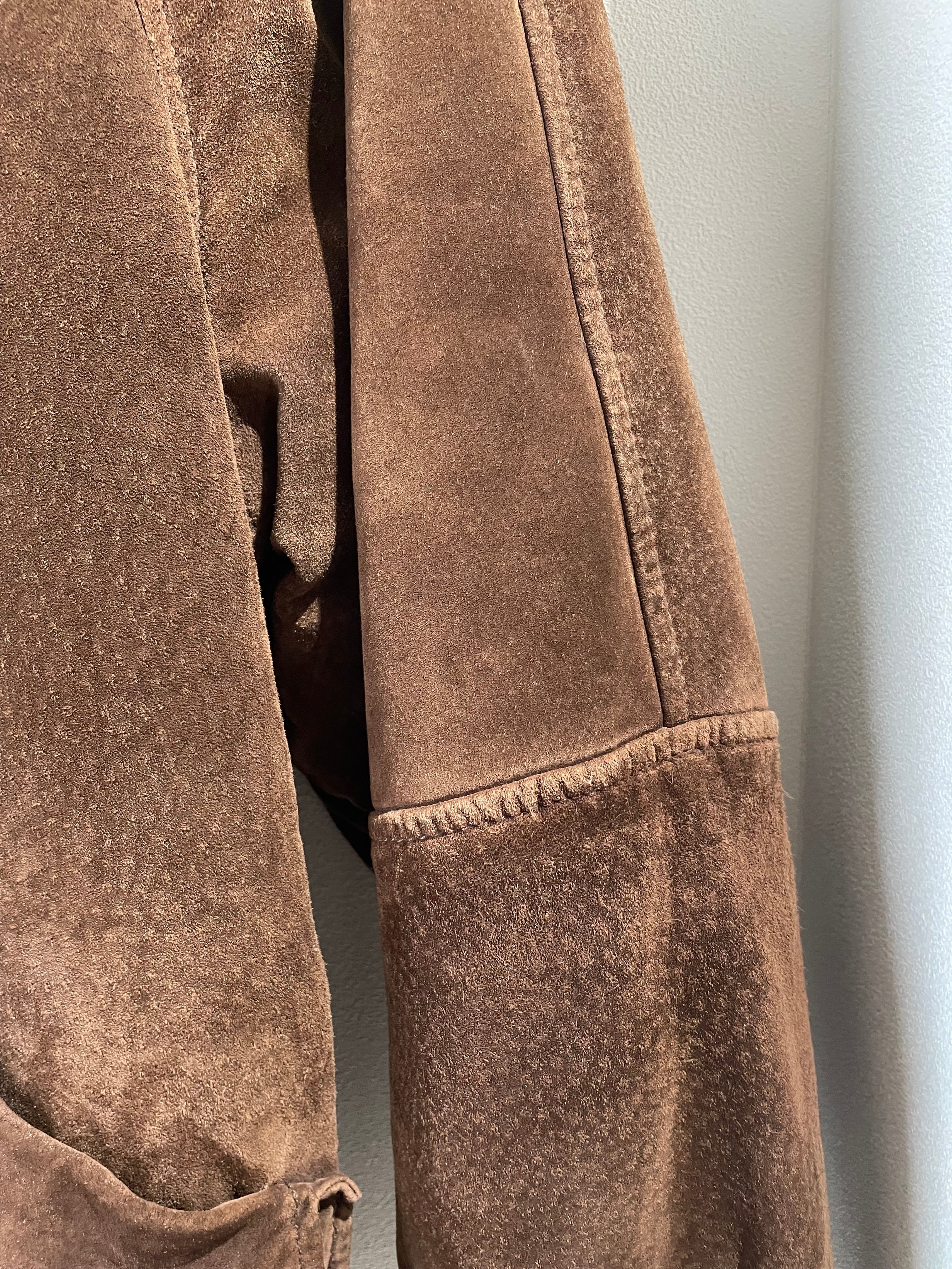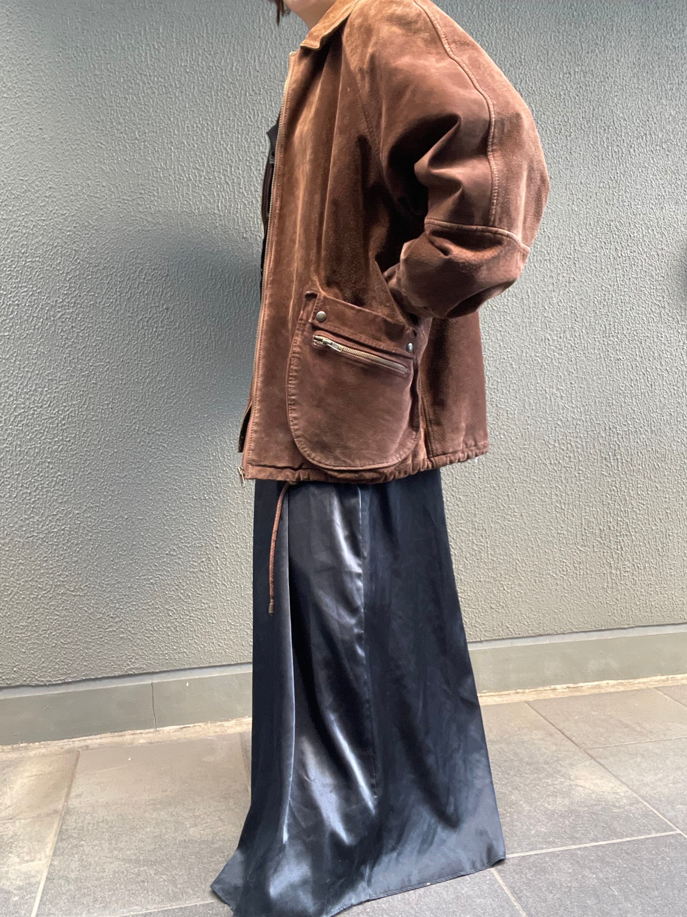 スエードレザーのジャケットは、ビッグサイズで、立体的なポケットがポイントです。