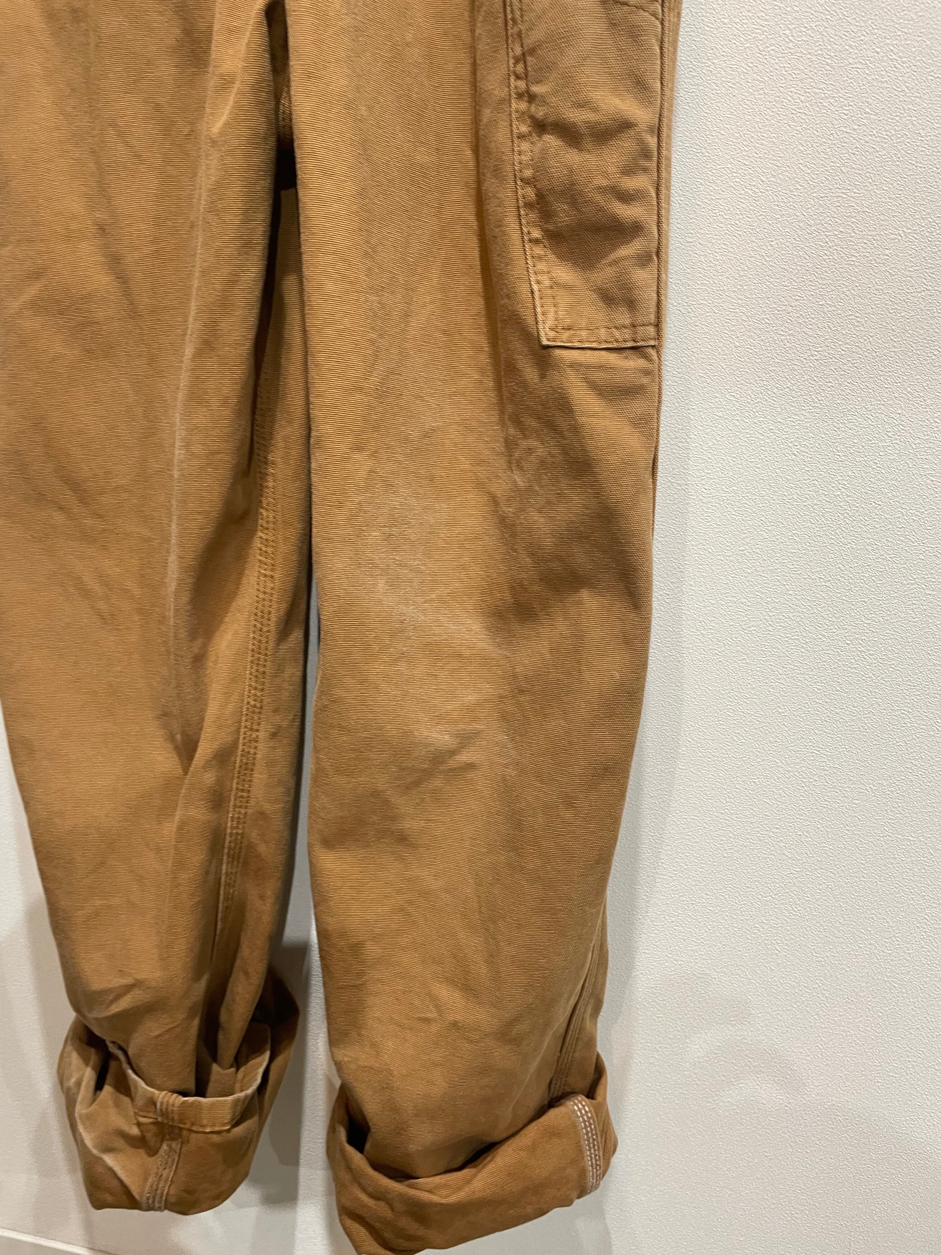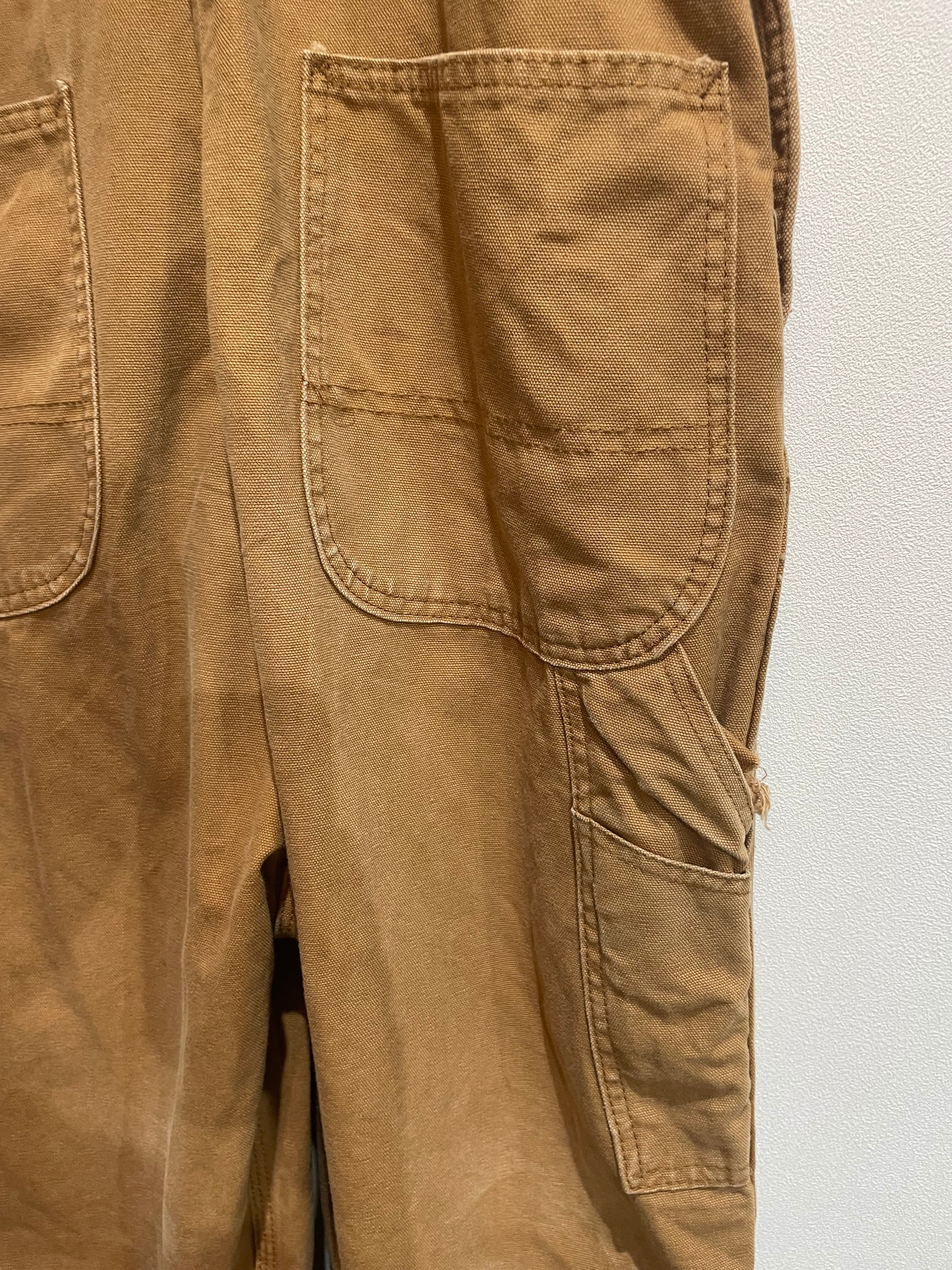 dickiesのオーバーオールは、珍しいベージュカラーが、カジュアルになりすぎず着こなしやすい。
